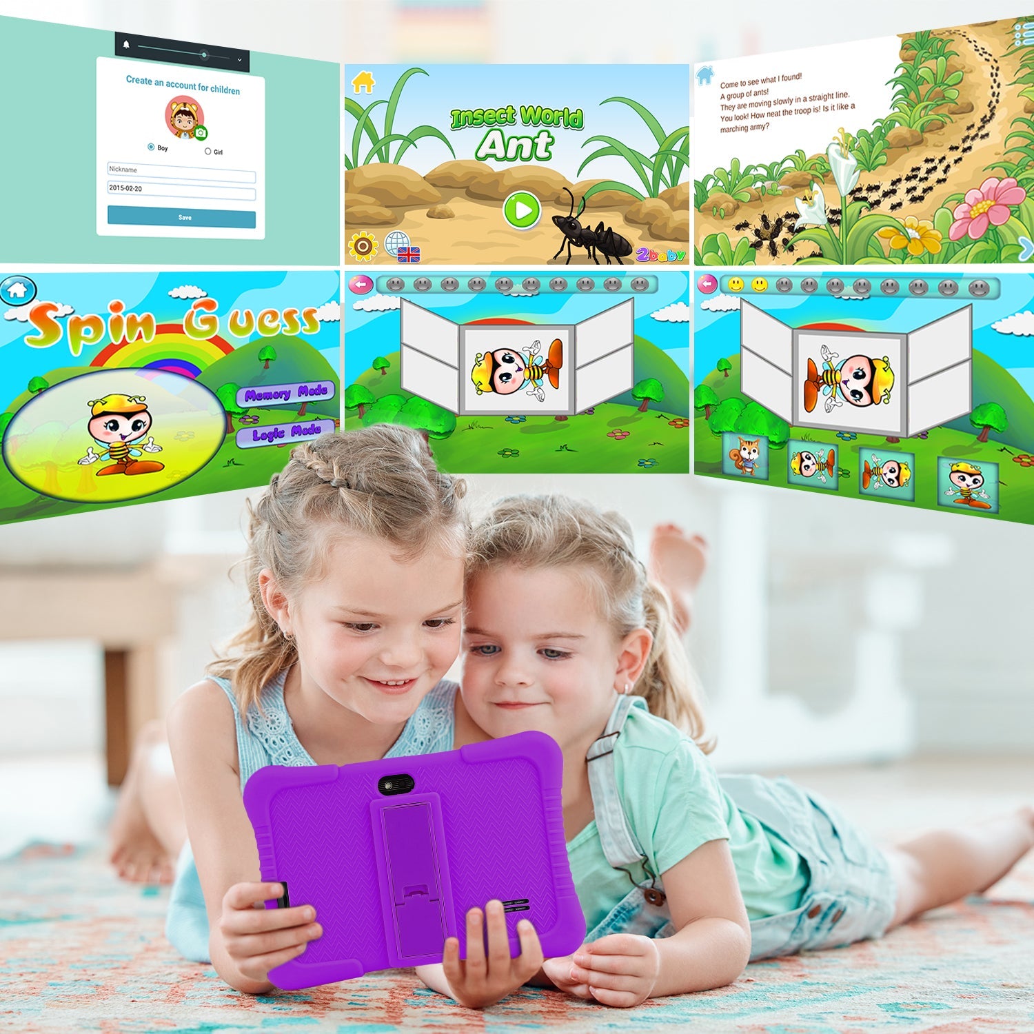 With the pre installed IWAWA application, children's guardians can enjoy this Set up different accounts on children's tablets, adjust screen time, and restrict harmful websites. Equipped with a durable and soft silicone shell, the tablet can be protected from slight drops and collisions caused by children playing. This is the best gift choice for Christmas, New Year, Easter, and children's birthdays.