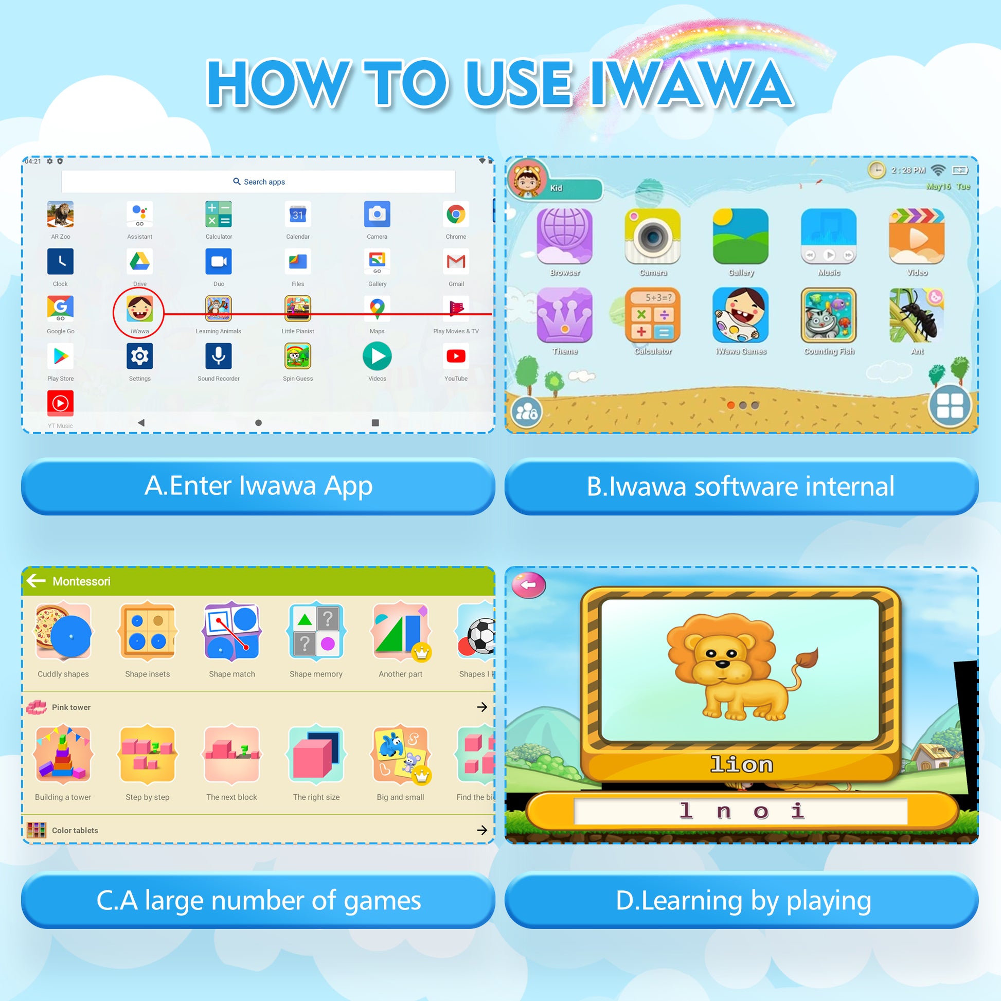 The Veidoo 10 inch kids tablet has passed the GMS certification and is pre-installed with the iwawa app, specially designed for children.Parents can set separate profiles for each kid,add or block apps,filter contents,set screen time limits,and lock their kids tablets device.